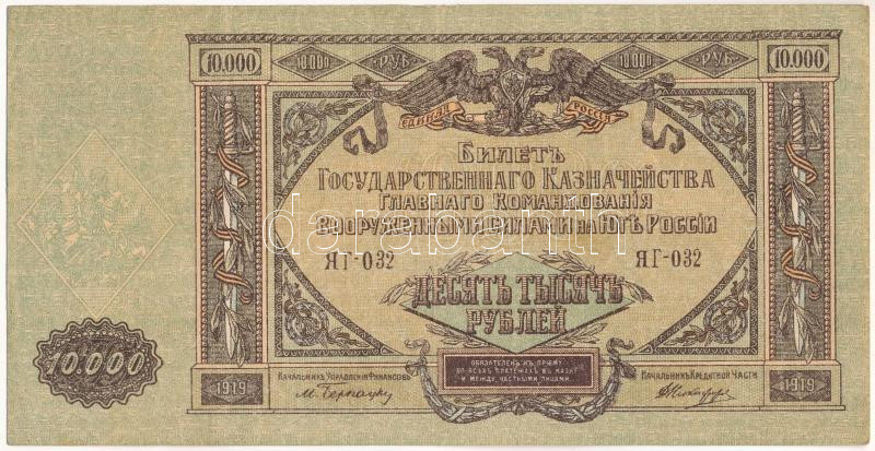 Orosz Polgárháború / Dél-Oroszország / Wrangel Hadserege 1919. 10.000R T:F, szép papír