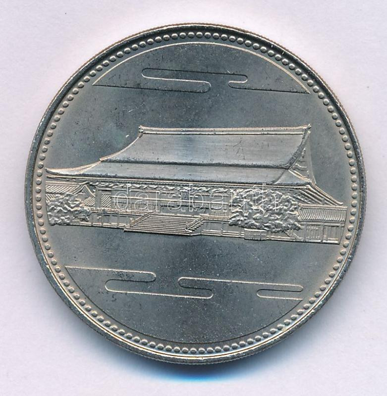 Beschreibung: Japán 1986. 500Y Cu-Ni "Hirohito császár uralkodásának 60. évfordulója / Shisinden Palota" T:XF
