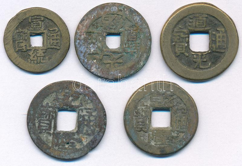 Beschreibung: Kínai Császárság ~19. század Cu cash (5db) T:F Chinese Empire ~19th century Cu cash (5pcs) C:F