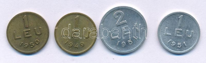 Románia 1949. 1L Ni-sárgaréz + 1950. 1L Ni-sárgaréz + 1951. 1L Al + 1951. 2L Al T:AU-XF