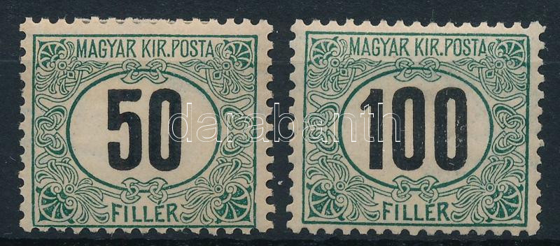Beschreibung: 1905 Zöldportó "A" 50f 1. vízjelállás + 100f 4. vízjelállás (16.000)