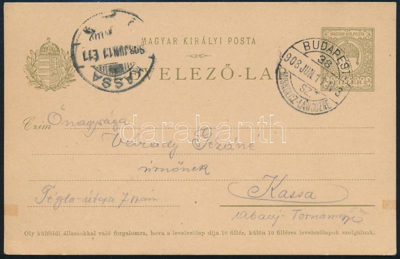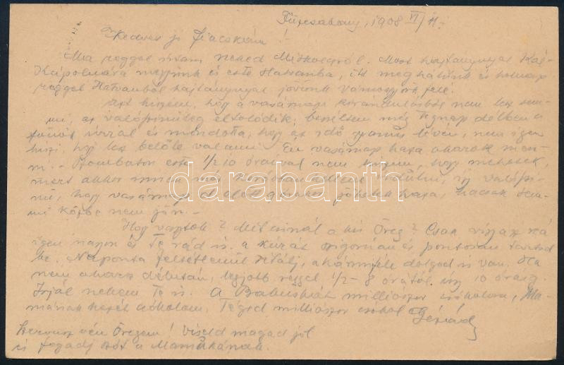 1908 Díjjegyes levelezőlap "BUDAPEST / MISKOLCZ-LAWOCZNE" mo... https://www.darabanth.com/de/512-Fernauktion/512.0/Philatelie-und-Postgeschichte-Ungarn/Ausgaben-1900-1919~618/1908-Dijjegyes-levelezolap-BUDAPEST-MISKOLCZ-LAWOCZNE-mozgoposta-belyegzessel-Postcard-wi~II3291110