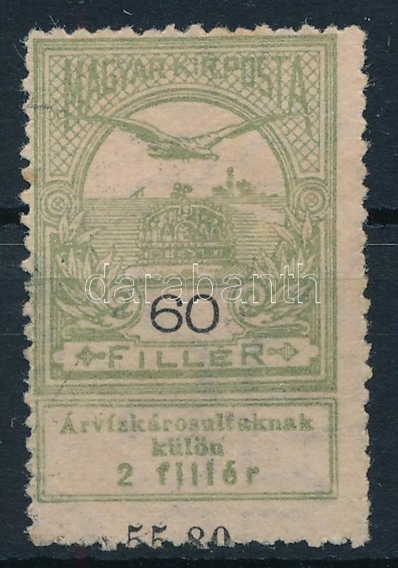 Beschreibung: 1913 Árvíz 60f elfogazva, alul összegző számmal, felcsúszott a bélyegre