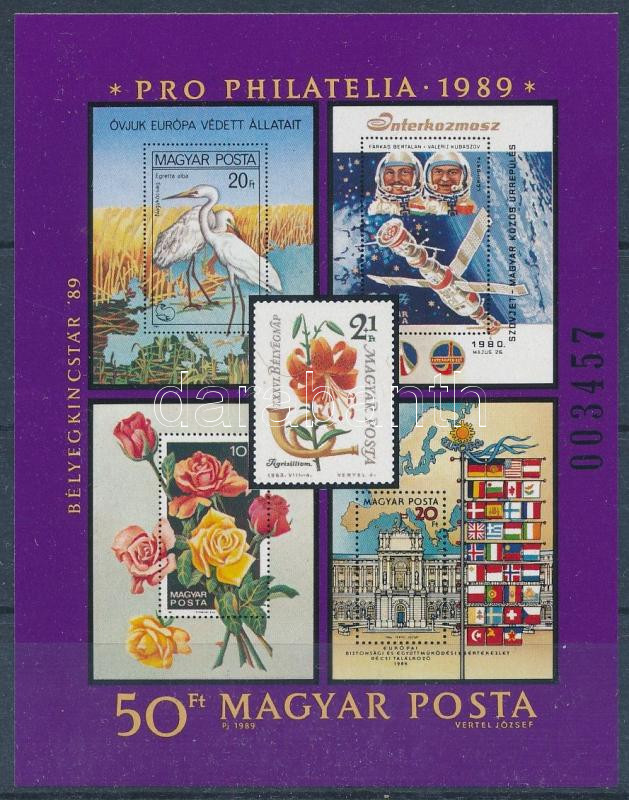 Beschreibung: 1989 Pro Philatelia ajándék blokk fekete sorszámmal (10.000)