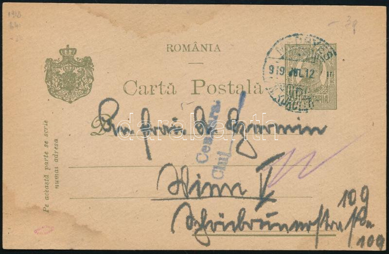 1919 Díjjegyes levelezőlap Meggyesről kolozsvári cenzúrával Bécsbe / C... https://www.darabanth.com/de/512-Fernauktion/512.0/Philatelie-und-Postgeschichte-Ungarn/Besetzung-und-Lokalausgabe-1919-1921-mit-Obligo~628/1919-Dijjegyes-levelezolap-Meggyesrol-kolozsvari-cenzuraval-Becsbe-Censored-PS-card-MEDGY~II3347995