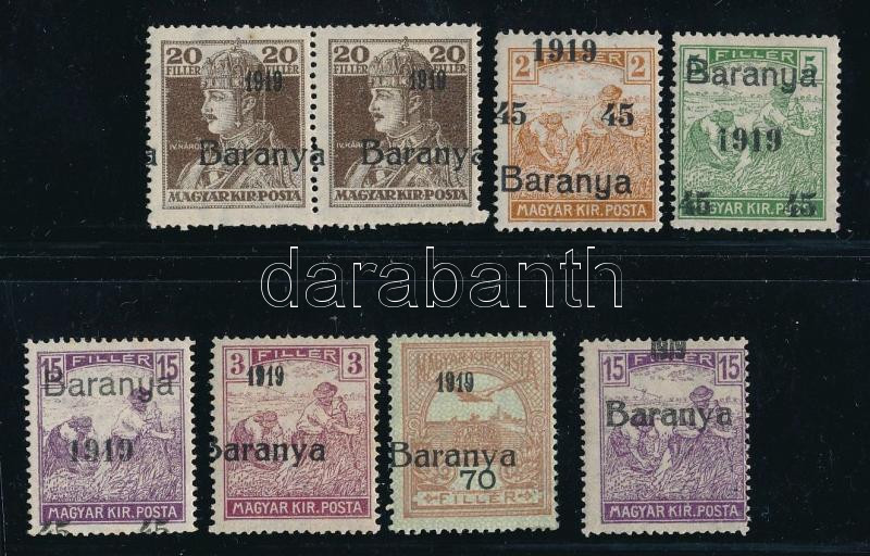 Beschreibung: Baranya I. 1919 8 db bélyeg, köztük 4 db antikva számokkal, Bodor vizsgálójellel