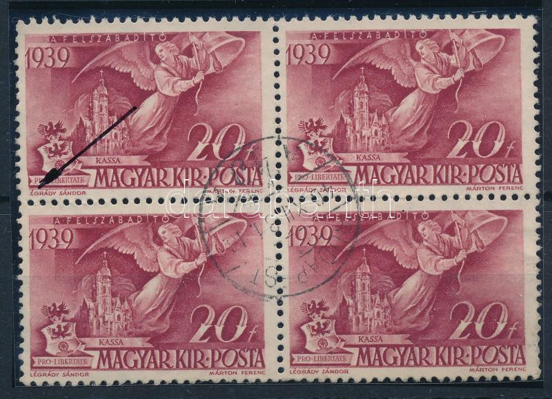 Beschreibung: 1940 Kormányzói 20 éves évforduló 20f négyestömb, benne "ÉGRÁDY" lemezhiba