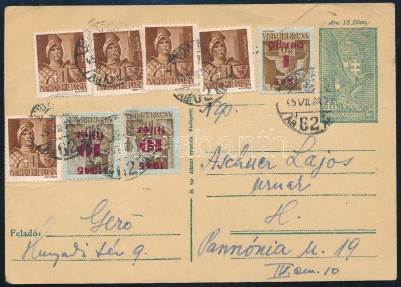 1945 (2. díjszabás) Budapest helyi levelezőlap 8 db bélyeggel https://www.darabanth.com/de/512-Fernauktion/512.0/Philatelie-und-Postgeschichte-Ungarn/Zweite-Inflationsperiode-1945-1946~636/1945-2-dijszabas-Budapest-helyi-levelezolap-8-db-belyeggel~II3415492