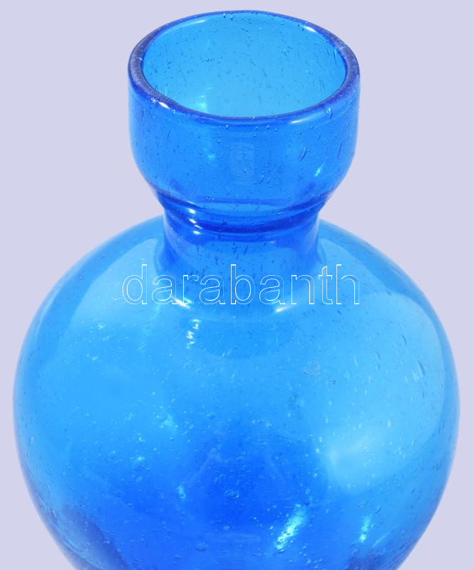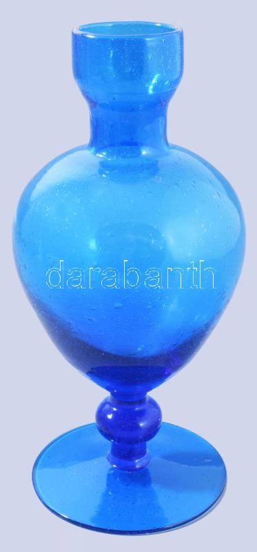Beschreibung: Anyagában buborékos színezésű kékszínű talpas váza, hibátlan, m: 22 cm