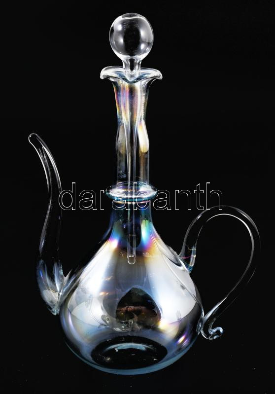 Kancsót formáló parfümös üveg, irizáló, hibátlan, m: 13,5 cm https://www.darabanth.com/de/512-Fernauktion/512.0/Porzellan-Keramik-Glass/Glaser~571/Kancsot-formalo-parfumos-uveg-irizalo-hibatlan-m-13-5-cm~II3458868