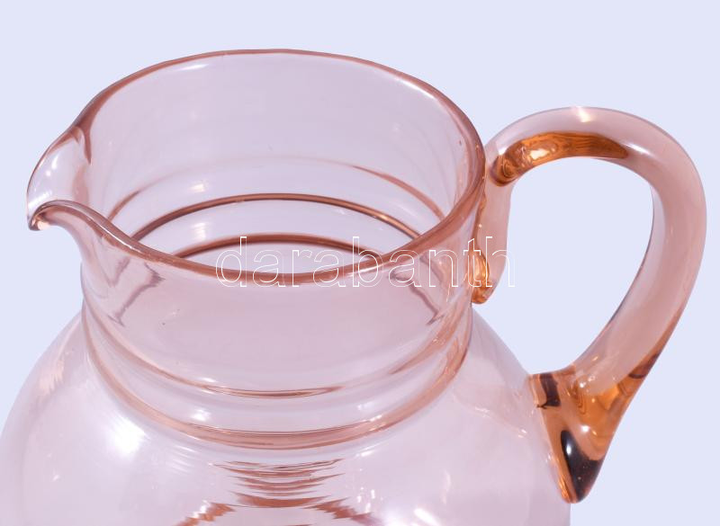 Vizes kancsó, rózsaszín, formába fújt, anyagában színezett 20 cm https://www.darabanth.com/de/512-Fernauktion/512.0/Porzellan-Keramik-Glass/Glaser~571/Vizes-kancso-rozsaszin-formaba-fujt-anyagaban-szinezett-20-cm~II3462585