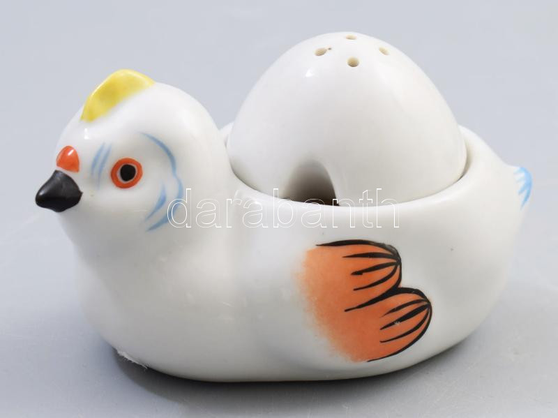 Retro csibe alakú tojástartó és sótartó, jelzés nélkül, h: 10 cm https://www.darabanth.com/de/512-Fernauktion/512.0/Porzellan-Keramik-Glass/Porzellan~570/Retro-csibe-alaku-tojastarto-es-sotarto-jelzes-nelkul-h-10-cm~II3295876