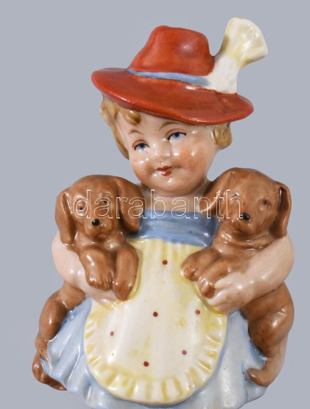 Beschreibung: Wagner & Apel Bertram piknikező lány vizslákkal. Jelzett, kézzel festett, hibátlan, m: 13 cm