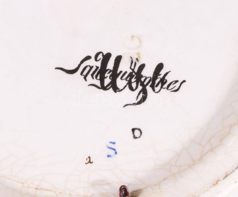 Beschreibung: cca 1880 Sarreguemines falitál, jelzett, repedéssel, d: 22 cm