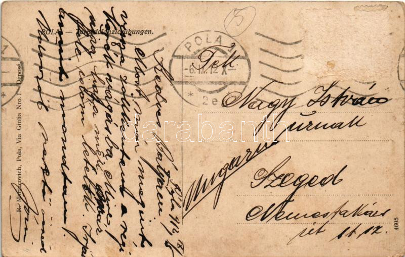 1912 Osztrák-magyar matrózok torpedó gyakorlat közben / K.u.K. Kriegsm... https://www.darabanth.com/de/513-Auktion-Philatelie-Postkarten-Numismatik-Kunstwerke-Bucher-Schreibwaren-Schmuck/513.0/Ansichtskarten/Kriegsschiffe~578/1912-Osztrak-magyar-matrozok-torpedo-gyakorlat-kozben-KuK-Kriegsmarine-Torpedolanzierubung~II3471123