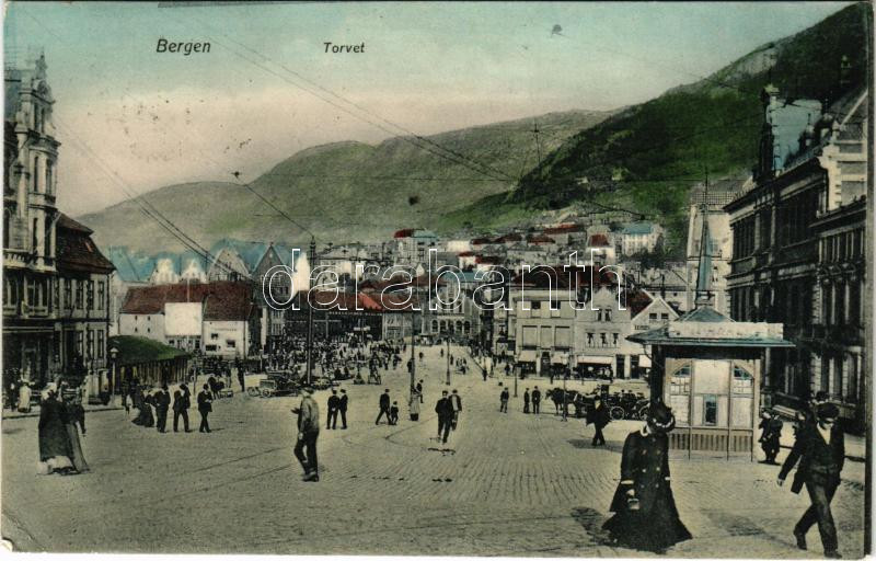 1908 Bergen, Torvet / street view (EK) https://www.darabanth.com/de/513-Auktion-Philatelie-Postkarten-Numismatik-Kunstwerke-Bucher-Schreibwaren-Schmuck/513.0/Ansichtskarten/Norwegen~552/1908-Bergen-Torvet-street-view-EK~II3471515