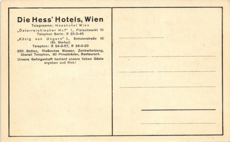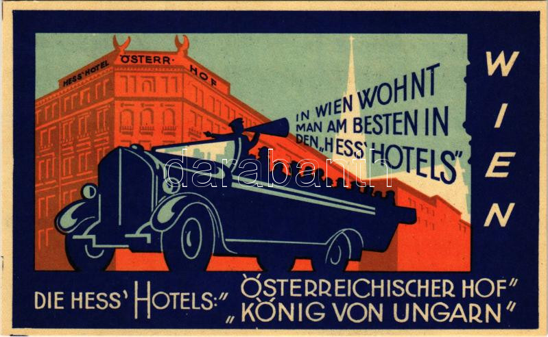 Wien, Vienna, Bécs; Die Hess' Hotels - Österreichischer Hof, König von Ungarn. "In Wien wohnt man am besten in den Hess' Hotels" / Art Deco style hotel advertisement