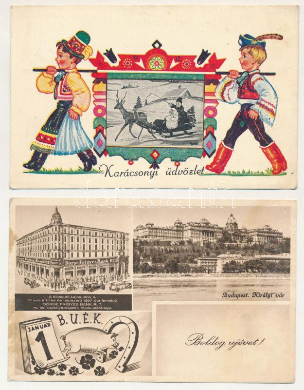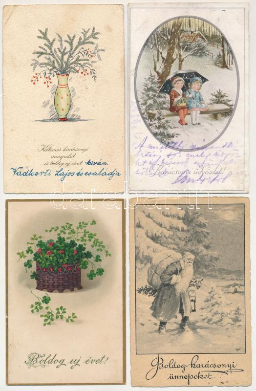 9 db RÉGI motívum képeslap vegyes minőségben: karácsonyi és újévi üdvözlőlapok / 9 pre-1945 motive postcards in mixed quality: Christmas and New Year greeting cards