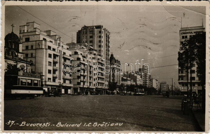 1939 Bucharest, Bukarest, Bucuresti, Bucuresci; Bulevard J. C. Bratianum, Gagel, Suchard, / street, trams, automobile, shops (EK)