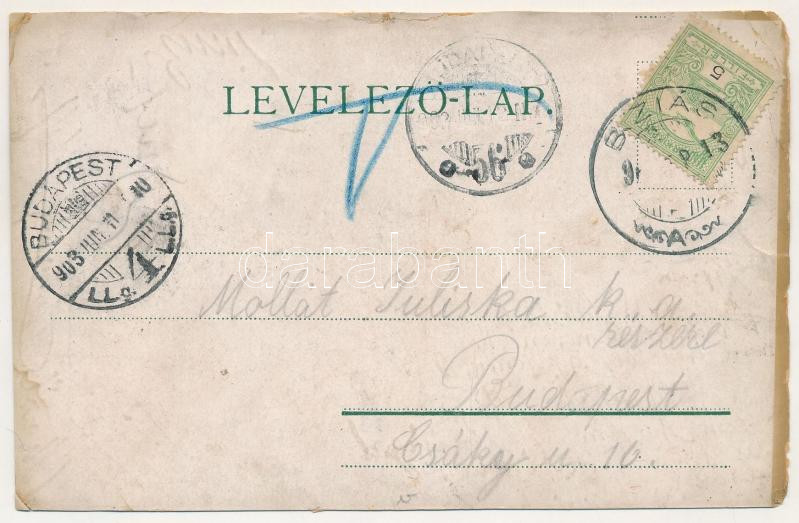 Beschreibung: 1903 Buziás, vasútállomás, meleg fürdők. Herrling Károly kiadása / Bahnstation, Warme Bäder / railway station, spa, baths. Art Nouveau, floral, litho frame (r)
