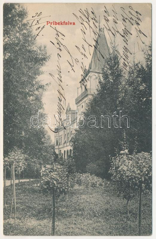 1907 Pribékfalva, Pribilesti; Teleki kastély, a képeslap címzettje gró... https://www.darabanth.com/de/513-Auktion-Philatelie-Postkarten-Numismatik-Kunstwerke-Bucher-Schreibwaren-Schmuck/513.0/Ansichtskarten/Siebenburgen~512/1907-Pribekfalva-Pribilesti-Teleki-kastely-a-kepeslap-cimzettje-grof-Teleki-Sandorne-Seef~II3470711