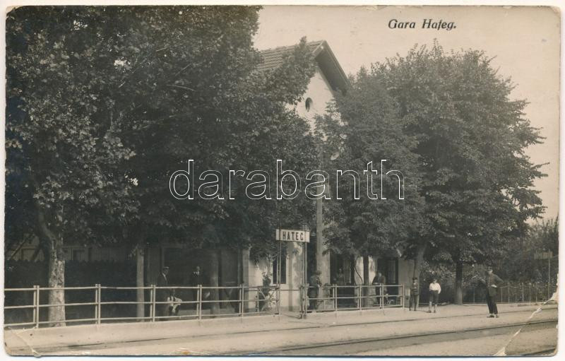 Beschreibung: 1928 Hátszeg, Hateg; Gara / vasútállomás. Nagy Bálint kiadása, Ioanovits felvétele / Bahnhof / railway station (EB)