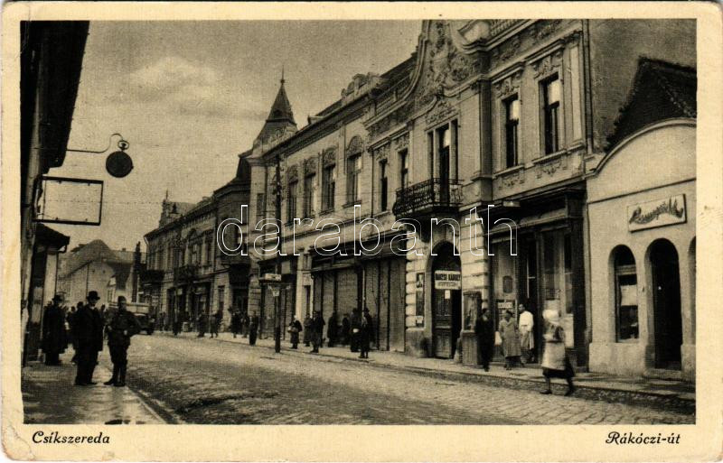1943 Csíkszereda, Mircurea Ciuc; Rákóczi út, üzletek, magyar katonák. ... https://www.darabanth.com/de/513-Auktion-Philatelie-Postkarten-Numismatik-Kunstwerke-Bucher-Schreibwaren-Schmuck/513.0/Ansichtskarten/Siebenburgen~512/1943-Csikszereda-Mircurea-Ciuc-Rakoczi-ut-uzletek-magyar-katonak-Peter-F-kiadasa-str~II3473058