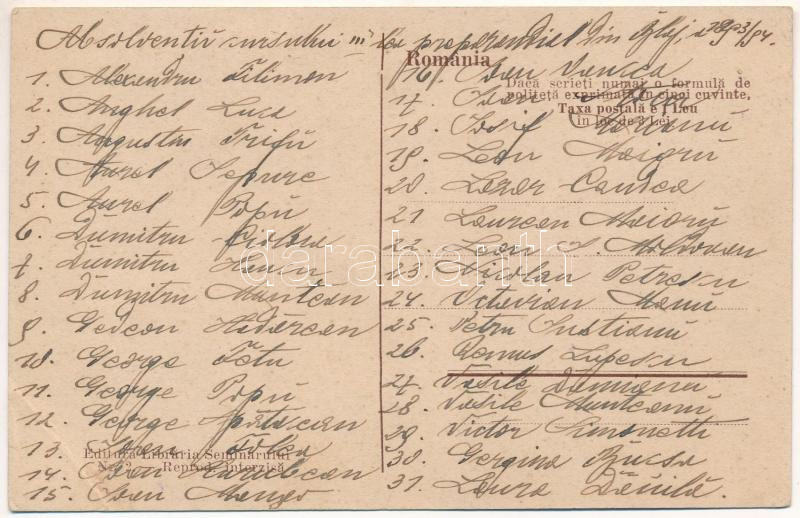 Beschreibung: Balázsfalva, Blasendorf, Blaj; Biserica catedrala / székesegyház, hátoldalon a kurzus elvégzőinek névsora / cathedral, list of graduates of the course on the backside (EB)