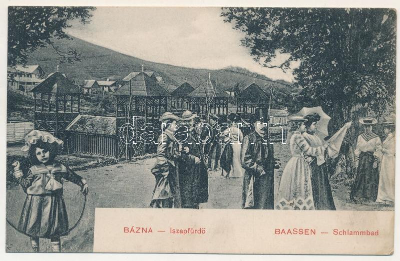Báznafürdő, Bad Baassen, Baile Bazna; iszapfürdő, montázs emberekkel é...