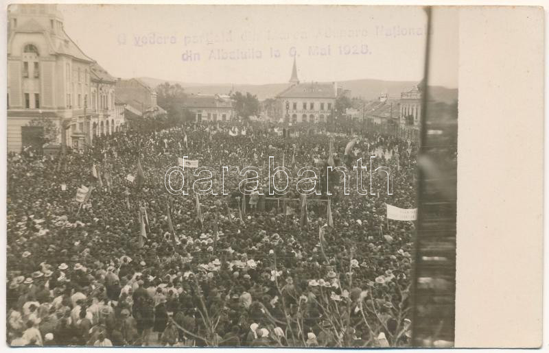 Gyulafehérvár, Karlsburg, Alba Iulia; O vedere partiala din Marea Adunare Nationala din Albaiulia la 6. Mai 1928. / Az 1918-as Román nemzeti nagygyűlés 10. évfordulója alkalmából tartott ünnepség / Celebration on the occasion of the 10th anniversary of the Romanian National Assembly of 1918 in Alba Iulia. photo (fl)