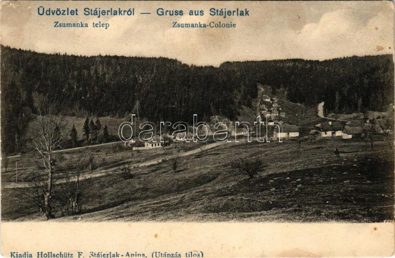 Beschreibung: Stájerlak, Steierlak, Stájerlakanina, Steierdorf, Anina; Zsumanka telep. Hollschütz F. kiadása / Zsumanka-Colonie / workers' colony (fl)