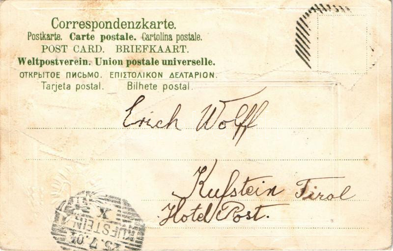 Beschreibung: 1904 Mariánské Lázne, Marienbad; Kurhaus und Neubad. Philatelie-Ansichtskarte Carl Otto Hayd. Art Nouveau, Emb. litho (pinhole)