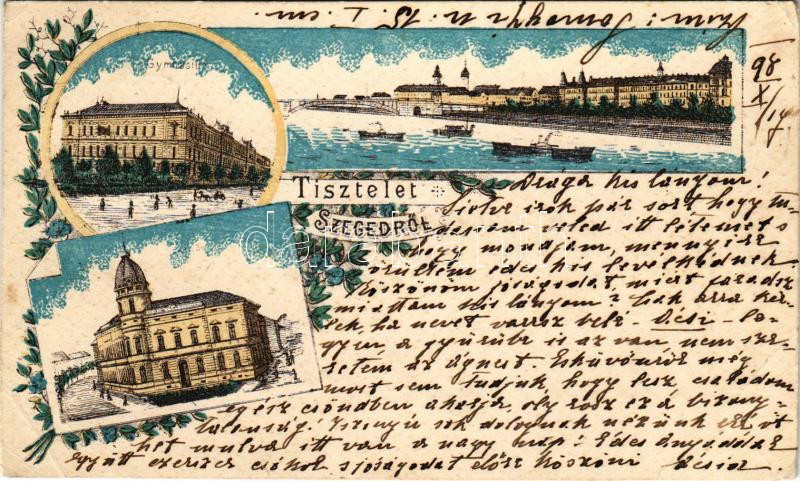 Beschreibung: 1898 Szeged, gimnázium, látkép. Art Nouveau, floral, litho (EB)