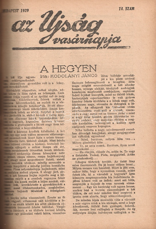 [Folyóirat] Az Ujság vasárnapja. Képes irodalmi és ismeretterjesztő hetilap. Felelős szerkesztő: Ágai Béla. Megjelenik vasárnaponként. Mutatványszám: nyolc lapszám az V. évfolyam tavaszi számaiból: 11-12., 14., 16-19, 21. szám. (1929. március 17. - 1929. május 26.) [Egybekötve.]