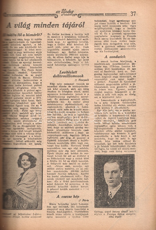 A tartalomból: Márai Sándor: Függöny -- Kodolányi János: A hegyen -- Tersánszky J. Jenő: Diogenes -- Róheim Géza: Szomáliakkal Adenban -- [Rozsnyai Kálmán] Sidney Carton: Isadora Duncan szerelmei -- Dánielné Lengyel Laura: Baskircsew Mária -- Elek Oszkár: Jeanne d'Arc. Orléans felszabadításának 500. évfordulójára -- Háy Gyula: A könyvillusztrálás művészete -- Sós Endre: Vaszary János pályája Nagybányától az expressionizmusig -- Feldmann Sándor: A degenerációról -- Lichtschein Lajos: Milyen találmányok vezették Marconit a rádió feltalálásához? -- A kor és a munka jogai. Válaszok egy életproblémára. -- Margittai László: Világszép kisasszony három kérője -- A Ficere család kalandjai (folytatásos képregény) -- Nyári ruhák és köpenyek kisleányoknak -- Ráér egy félórára? (rejtvényrovat) -- A világ minden tájáról (érdekességek, furcsaságok).