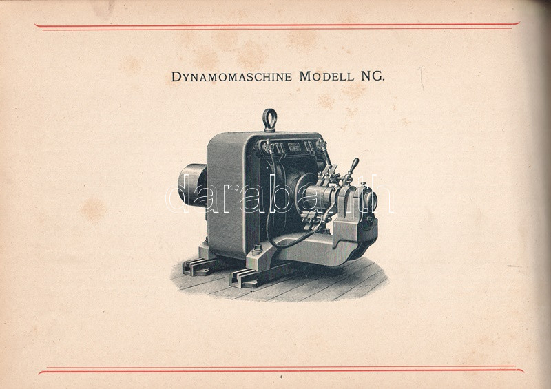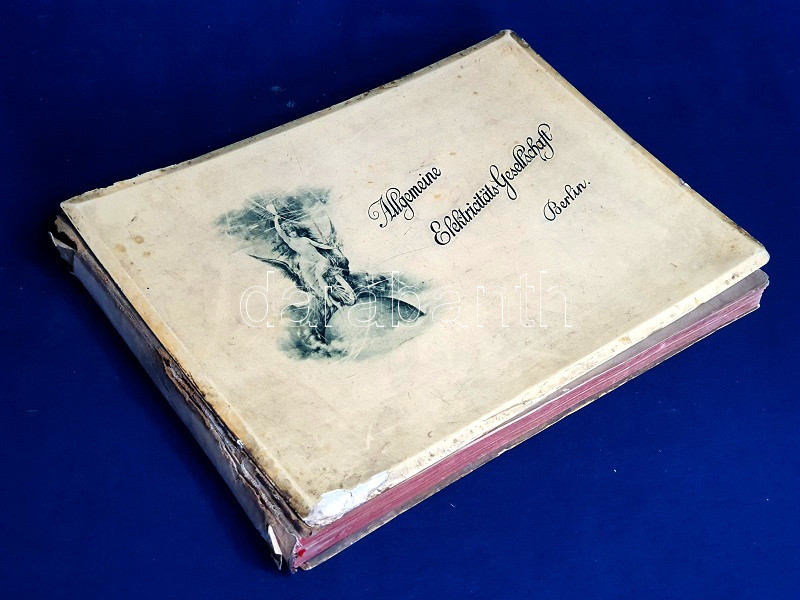 A bekötött, enyhén elszíneződött eredeti borítón az AEG logója. Példányunk fűzése az előzékeknél enyhén meglazult.