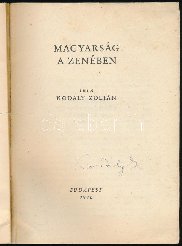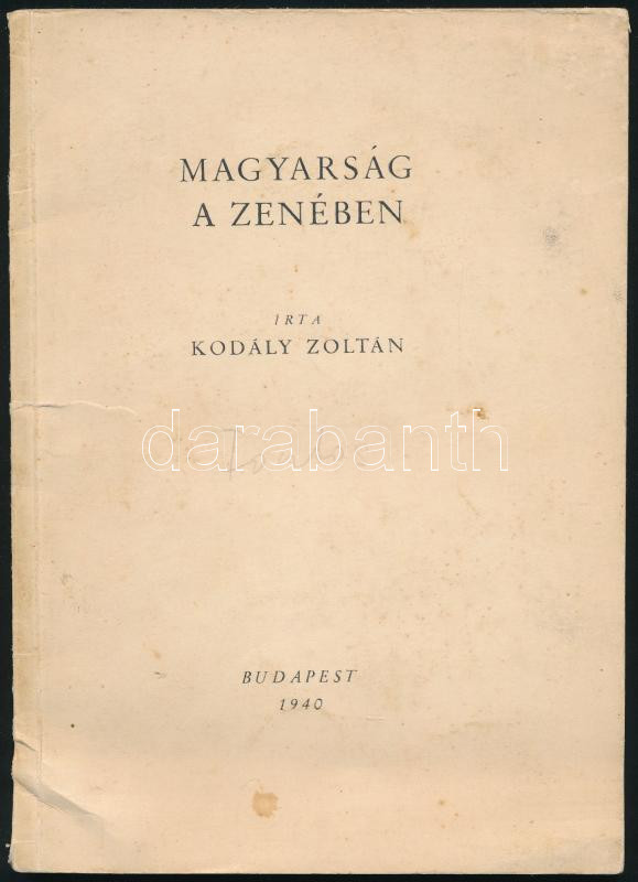 Kodály Zoltán: Magyarság a zenében. Bp., 1940. 42p.. Kissé foltos kiad... https://www.darabanth.com/de/513-Auktion-Philatelie-Postkarten-Numismatik-Kunstwerke-Bucher-Schreibwaren-Schmuck/513.0/Bucher/Bucher-Andere-kuriositaten~175/Kodaly-Zoltan-Magyarsag-a-zeneben-Bp-1940-42p-Kisse-foltos-kiadoi-papirkotes-3Cstron~II3468129