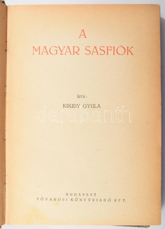 Krúdy Gyula: A magyar sasfiók. Bp., Fővárosi Könyvkiadó. Kiadói félvás... https://www.darabanth.com/de/513-Auktion-Philatelie-Postkarten-Numismatik-Kunstwerke-Bucher-Schreibwaren-Schmuck/513.0/Bucher/Bucher-Andere-kuriositaten~175/Krudy-Gyula-A-magyar-sasfiok-Bp-Fovarosi-Konyvkiado-Kiadoi-felvaszon-kotes-kopottas~II3473045