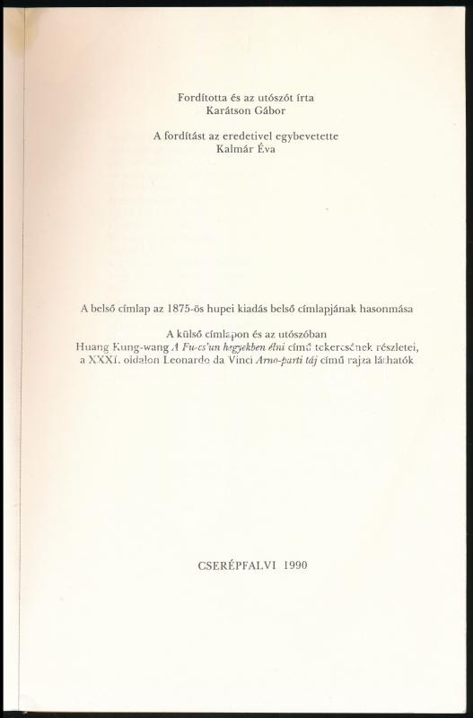 Lao-ce: Tao te king. Ford. és az utószót írta: Karátson Gábor. Bp., 19... https://www.darabanth.com/de/513-Auktion-Philatelie-Postkarten-Numismatik-Kunstwerke-Bucher-Schreibwaren-Schmuck/513.0/Bucher/Bucher-Andere-kuriositaten~175/Lao-ce-Tao-te-king-Ford-es-az-utoszot-irta-Karatson-Gabor-Bp-1990-Cserepfalvi-Kiado~II3463985