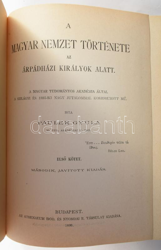 Beschreibung: Pauler Gyula: A magyar nemzet története az Árpád-házi királyok alatt. I-II. kötet. Bp., 1984, ÁKV. Az 1899-es kiadás reprint kiadása. Kiadói aranyozott műbőr kötésben.