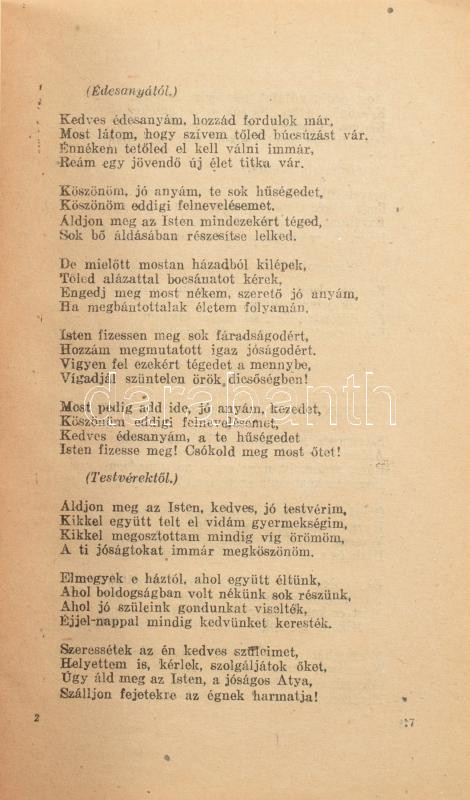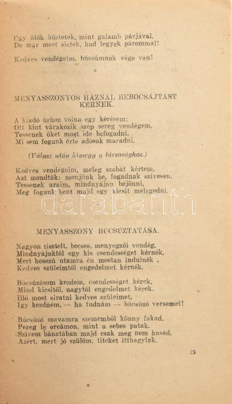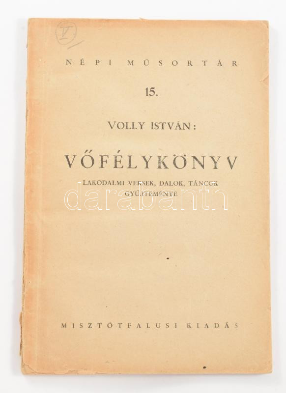 Volly István: Vőfélykönyv. Lakodalmi versek, dalok, táncok gyűjteménye... https://www.darabanth.com/de/513-Auktion-Philatelie-Postkarten-Numismatik-Kunstwerke-Bucher-Schreibwaren-Schmuck/513.0/Bucher/Bucher-Andere-kuriositaten~175/Volly-Istvan-Vofelykonyv-Lakodalmi-versek-dalok-tancok-gyujtemenye----Bp-e-n-M~II3467179