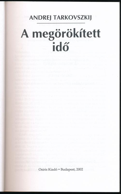 Andrej Tarkovszkij: A megörökített idő. Osiris Könyvtár Film. Bp., 200... https://www.darabanth.com/de/513-Auktion-Philatelie-Postkarten-Numismatik-Kunstwerke-Bucher-Schreibwaren-Schmuck/513.0/Bucher/Bucher-Architektur-Kunst~161/Andrej-Tarkovszkij-A-megorokitett-ido-Osiris-Konyvtar-Film-Bp-2002-Osiris-Kiadoi-papi~II3467522