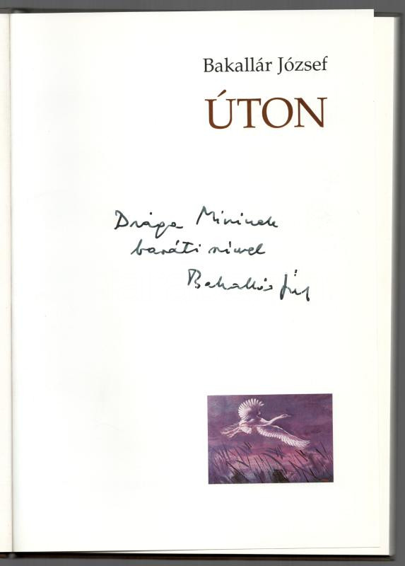 Bakallár József: Úton. Olajképek, akvarellek, rajzok. A szerző, Bakallár József (1940-2013) festőművész által Kratochwill Mimi (1931-2024) művészettörténész részére dedikált példány. Bp., 1998, magánkiadás (Mester Nyomda), 79+(1) p. Kiadói kartonált papírkötés. Megjelent 500 példányban.