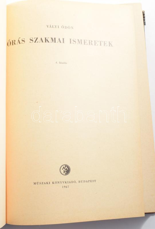 Vályi Ödön: Órás szakmai ismeretek. Bp., 1967, Műszaki, 527+1 p. 4. kiadás. Kiadói vászonkötésben, sérült kiadói papír védőborítóban, kopottas állapotban. Megjelent 2800 példányban.