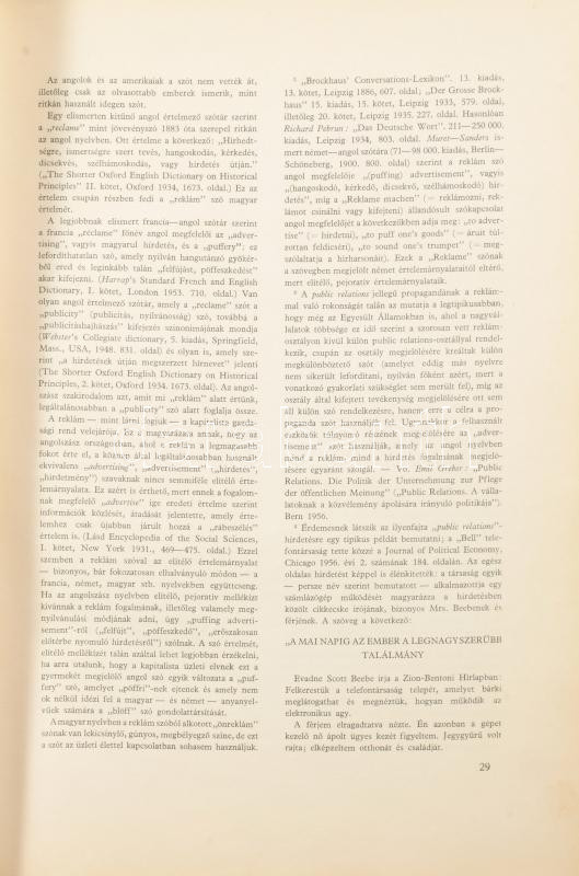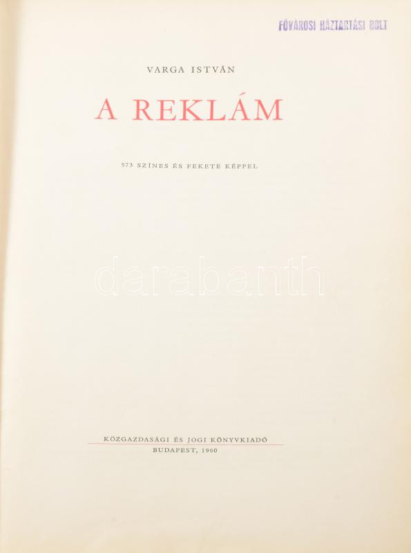Varga István: A reklám. Bp., 1960, Közgazdasági és Jogi Könyvkiadó. Gazdag fekete-fehér és színes képanyaggal illusztrálva. 442p. Kiadói aranyozott egészvászon-kötés, kopottas állapotban.
