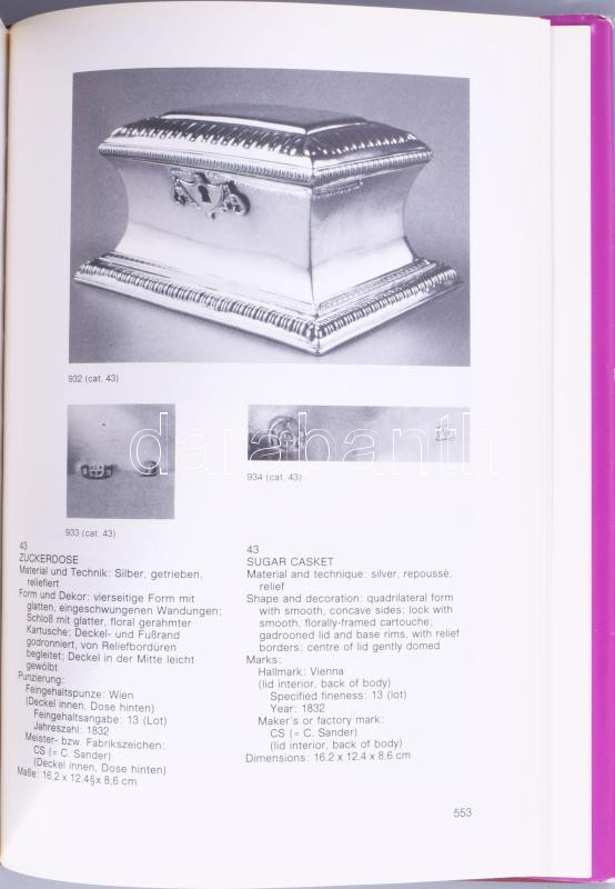 Waltraud Neuwirth: Wiener Silber 1780-1866 Vol. I-II. Vienese Silver. Klasszizismus, Biedermeier, Historismus, Classicism, Biedermeier, Historicism. Vol. I.: Tabaksdosen, Snuffboxes. Vol. II.: Zuckerstreuer, Zuckerdosen, Zuckervasen, Zuckerzangen. Sugar Castors, Sugar Bowls, Sugar Vases, Sugar Tongs.