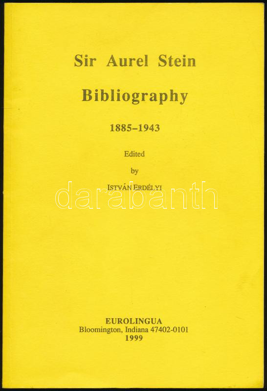 Erdélyi István (szerk.): Sir Aurel Stein Bibliography 1885-1943. Arcadia Bibliographia Virorum Eruditorum 17. A szerkesztő, Erdélyi István (1931-2020) régész, történész által dedikált példány. Bloomington, 1999, Eurolingua, 68+(4) p. Angol nyelven. Kiadói papírkötés.