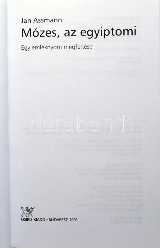 Jan Assmann: Mózes, az egyiptomi. Egy emléknyom megfejtése. Ford.: Gulyás András. A görög és latin idézetek fordítása: Ábrahám Zoltán, Görföl Tibor, és Tóth Péter. Osiris Könyvtár. Vallástörténet. Bp.,2003., Osiris. Kiadói papírkötés.