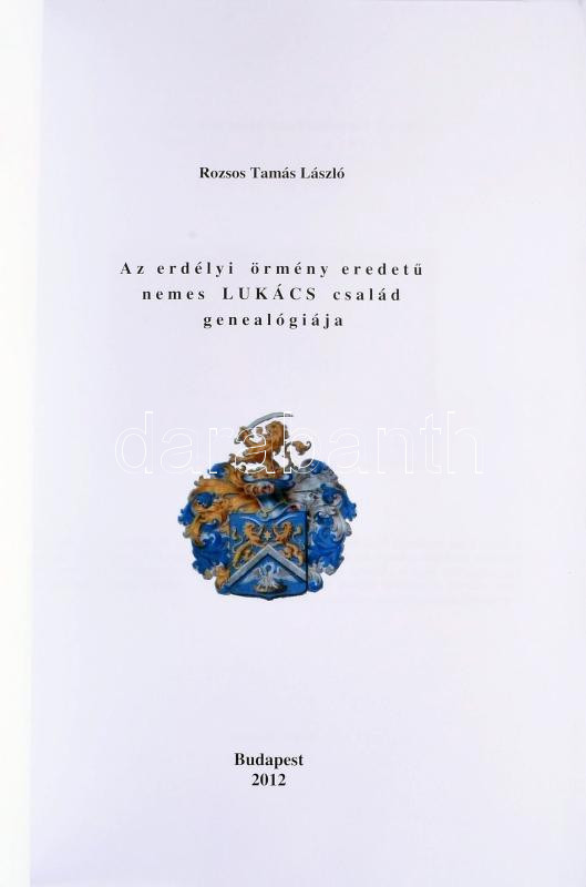 Rozsos Tamás László: Az erdélyi örmény eredetű nemes LUKÁCS család gen... https://www.darabanth.com/de/513-Auktion-Philatelie-Postkarten-Numismatik-Kunstwerke-Bucher-Schreibwaren-Schmuck/513.0/Bucher/Bucher-Geschichte~159/Rozsos-Tamas-Laszlo-Az-erdelyi-ormeny-eredetu-nemes-LUKACS-csalad-genealogiaja-Bp-2012-~II3470402