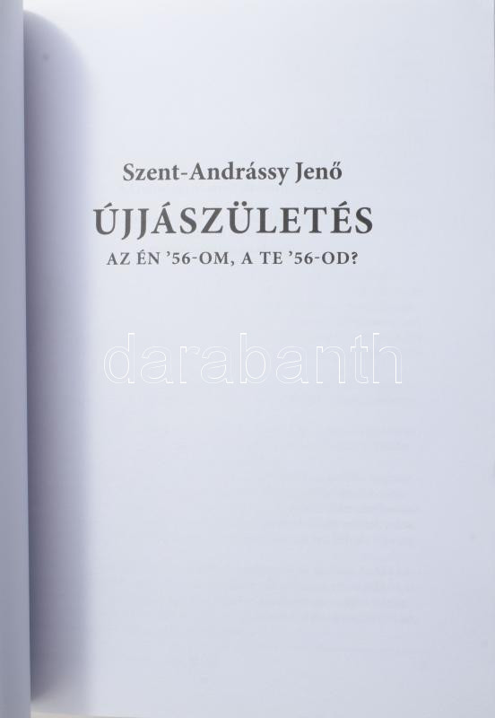 Szent-Andrássy Jenő: Újjászületés. Az én '56-om, a te '56-od... https://www.darabanth.com/de/513-Auktion-Philatelie-Postkarten-Numismatik-Kunstwerke-Bucher-Schreibwaren-Schmuck/513.0/Bucher/Bucher-Geschichte~159/Szent-Andrassy-Jeno-Ujjaszuletes-Az-en-56-om-a-te-56-od-Kiadoi-papirkotes~II3471303